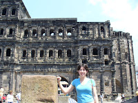 My high school mascot. Or someone from Trier. I finally visited Trier, Germany, the namesake of my high school, New Trier in Winnetka, IL, USA. Trier is thought to be the oldest city in Germany, founded by the Romans in 16BC as Augusta Treverorum (thus the locals were known as Trevians). I managed to get my picture snapped behind the Porta Nigra (from the front the whole gate didn't fit in the photo). We were only there for an hour and a half, and it rained as we were leaving, but Anwar, Loreen, Helga and I managed to have lunch in front of a graveyard in front of a thousand year old church. It was a bit of a shame that our time there was so short, but we had to return to Luxembourg for our last night before heading back to Delft.